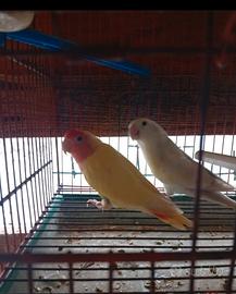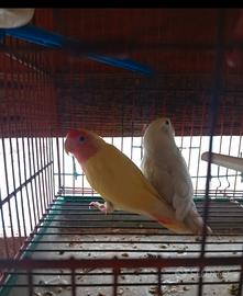 Vendo coppia inseparabili, la femmina e gialla con occhi rossi il maschio e bianco con un po di sfomatura