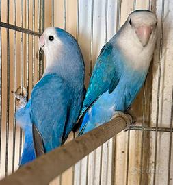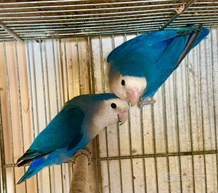 Coppia di Inseparabili Roseincollis adulti NT Piumalunga ( hanno già riprodotto l' anno scorso ) Maschio Cobalto , femmina Cobalto Viola . Per informazioni , messaggio in privato