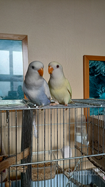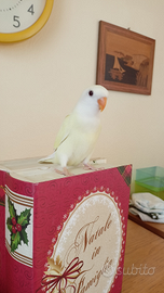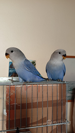 Disponibili a Palermo questi bellissimi inseparabili nati da coppia sesso legata in ottima saluta. Il celestino ha 4 mesi mentre gli altri hanno quasi 2 mesi. Allevati e svezzati dai genitori ma abituati alla presenza costante dell'uomo. Sono già abituati ad uscire 2/3 orette al giorno ma ovviamente ancora diffidano nel farsi prendere, ma comunque salgono sull'uomo per una loro curiosità generale. È importante farli uscire per farli svolazzare un po' liberi ma soprattutto fare smaltire il cibo che assumono. Sempre in gabbia tutta la vita potrebbe essere un problema in futuro, almeno che non si hanno voliere ma quando dico voliere, voliere vere e proprie e no gabbiette 60x40, 100x50 ecc ma parlo di voliere grandi dove possono veramente svolazzare (Cosa importante sui pappagalli). Sono soggetti si abituati già un po' alle persone e con il tempo lo saranno molto di più, ma ancora di più perché sono cresciuti tutti insieme e conosco i loro simili. Preferisco vendere a persone che troveranno per loro un compagno/a di vita, uno perché è la cosa più normale è logica di questo mondo, ma secondo poi perché se tenuti da soli, con ogni probabilità possono incominciare una serie di problemi come nervosismo, depressione, autodeplumazione e via dicendo. Dico questo per esperienza. Il pappagallo celestino è un probabile maschio perché già mi corteggia il pappagallo (cremino giallino). Il cremino giallino appunto sembra una presunta femmina, come sembrano presunte femmine i due blu scuri opalini. L'altro pappagallo bianco e grigio con sfumature di blu sembrerebbe essere un maschio anche lui. Dico questo per intuizione personale è in più per una questione dei genitori che sono una coppia sesso legata. Prezzi onestissimi sia come da privato ma soprattutto rispetto ad uccellerie. Cedo 25 euro a soggetto per un minimo di recupero spese. Solo persone serie e convincenti