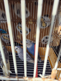 Pappagalli parrocchetti calopsite e inseparabili allevati a mano e coppie riproduttive