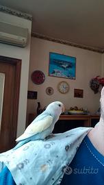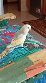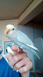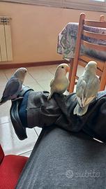 Disponibili questi due bellissimi inseparabili. Quasi 3 mesi e godono di ottima salute. Cedo a persone che si prenderanno cura di loro in tutti i sensi e che troveranno per loro un compagno/a di vita. Sono si abituati all'uomo ma sono cresciuti con i loro simili, dunque lasciarli da soli per tutta la vita è in uno spazio ridotto senza che escano, diventerebbe in futuro un problema non da poco. Abituati ad uscire un minimo di 3 orette al giorno. Il pappagallo con ali gialle ancora diffida dell'uomo nel salire sulla mano ma già comincia a venire in spalla, mentre l'altro ha già molta più confidenza. Con molta pazienza si abitueranno a chiunque perché è solo questione di tempo prima che accada. Se non avete intenzione di trovare per loro un compagno futuro, potrete prenderli anche entrambi per farsi almeno compagnia per la vita anche se sconsiglio questa opzione dato che è più giusto formare in futuro una coppia che non sia fatta da fratelli o sorelle. Prezzo onestissimo solo 25 euro a soggetto per un minimo di recupero spese