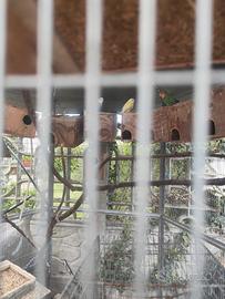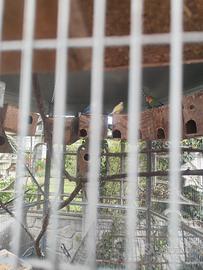 In blocco disponibile pappagallini inseparabili circa 5 coppie di diversi colori con gabbia grande