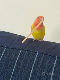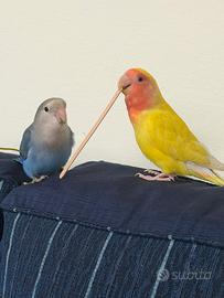 Coppia di pappagallini inseparabili allevati a mano nati i primi di novembre, abituati a stare con i bambini (Non si sa se sono maschio o femmina) Per altre foto video informazioni chiamare o anche whatsapp!