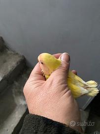 Pullo di inseparabile da imbecco Mutazione lutino Anellato foi 2026 In ottima forma e salute contatto whatsapp 3460315916