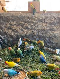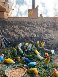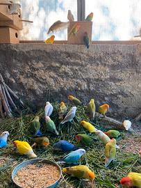Disponibili coppie riproduttive di inseparabili roseicollins di molte mutazioni, piumaggio perfetto e anellati Foi ! Per qualsiasi info contattatemi i prezzi variano in base alla mutazione