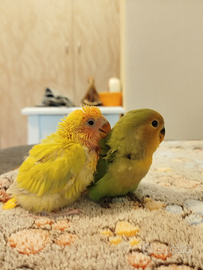 Sono disponibili, una volta completamente svezzati, questi due splendidi e dolcissimi pulli di Agapornis roseicollis (Inseparabili)