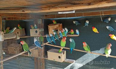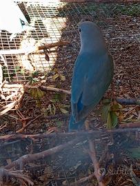 Inseparabile faccia arancio blu e verde all.a mano in fase di svezzamento di 30 giorni, verrà ceduto o già autonomo o da finire lo svezzamento a mano, disponibile anche il nutribird sfuso.