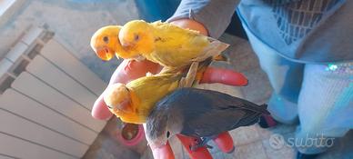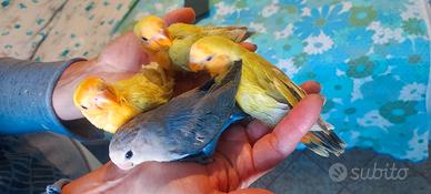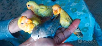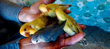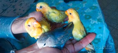 Vendita di 4 Meravigliosi Pappagallini Sei alla ricerca di un pappagallo vivace, affettuoso e pieno di colore per la tua casa? Abbiamo 4 adorabili inseparabili roseicollis allevati a mano, pronti a far parte della tua famiglia. Questi piccoli pappagallini sono perfetti per chi cerca un compagno di vita che non solo è affettuoso, ma anche incredibilmente vivace e pieno di personalità. Caratteristiche principali dei nostri pulli inseparabili rosicollis: Allevamento a mano: I nostri pappagallini sono cresciuti con amore e dedizione, abituati al contatto umano sin da piccoli, per garantirti un compagno docile e socievole. Affettuosità: Questi pappagallini sono conosciuti per il loro comportamento amorevole verso i loro padroni. Si legano facilmente e adorano interagire con le persone. Piccoli e allegri: Nonostante le loro dimensioni contenute, gli inseparabili roseicollis hanno un carattere vivace e affettuoso, sono estremamente curiosi e amano giocare, ideali per famiglie o persone che cercano compagnia. Colorazioni uniche: Offriamo una varietà di colorazioni bellissime che faranno brillare qualsiasi ambiente. 3 pappagallini con colorazione cannella verde e faccia arancio: Una combinazione calda e affascinante, ideale per chi cerca un animale con colori naturali e vibranti. 1 pappagallino blu viola (violetto cobalto): Una mutazione rara e affascinante, dal blu profondo e il viola che sicuramente attrarrà l'attenzione di chi lo osserva. Perché scegliere un inseparabile roseicollis? Gli inseparabili roseicollis sono noti per essere tra i pappagalli più amichevoli, facili da addestrare e adatti anche a chi è alle prime armi con gli uccelli. Sono anche molto resistenti e si adattano facilmente a diverse situazioni domestiche, portando gioia e colore ogni giorno. Inoltre, essendo allevati a mano, sono molto più affettuosi e legati al loro proprietario, creando un legame speciale e duraturo. Prezzo: €60 cadauno , un prezzo conveniente per un pappagallino di qualità