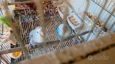 Disponibili esemplari di Inseparabile roseicollis Azzurri e Blu da imbeccare con tre poppate al giorno, sono dei coccoloni. Se vorrete Vi fornirò tutta l'assistenza necessaria per imbeccarli, con istruzioni, videotutorial e camera calda fatta da me, se ne avete bisogno anche il necessario per l'imbecco. Il prezzo di 20 euro si riferisce agli esemplari a 4 poppate di circa 15-18 gg. Consegna a Catania, vicino l'ospedale Garibaldi nuovo nesima. Garantisco massima serietà, non spedisco e non scambio. Per aggiornamenti sulle nascite potete seguirmi su TikTok cercando il nome utente sebastianorusso76 Per ulteriori informazioni non esitate a contattarmi telefonicamente o su WhatsApp al 3480087968 grazie e buona navigazione