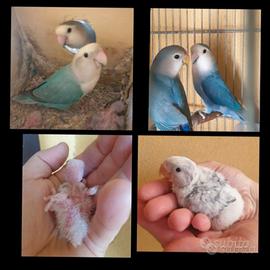 Disponibili esemplari di Inseparabile roseicollis Ancestrali (verdi con testa rossa) e Blu da imbeccare con tre poppate al giorno, sono dei coccoloni.