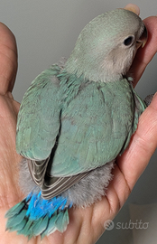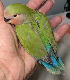 Disponibili a fine svezzamento e a persone amanti di questa specie, pulli di inseparabili di diversi colori allevati fin dai primissimi giorni a mano (i genitori non li alimentavano), per cui molto legati e completamente fiduciosi dell'essere umano. Prezzo 90 euro con sessaggio, 80 senza.Solo realmente interessati.