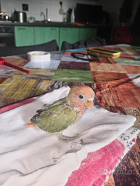 Vendo pullo di inseparabili nato il 2/11/2025 2 imbeccate al giorno da allevare a mano Nelle foto ci sono anche i genitori Per altre info contattatemi