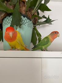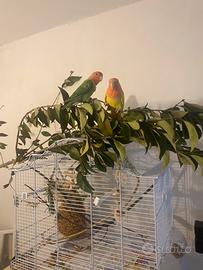 Regalo coppia di inseparabili con la loro figlia e gabbia accessoriata. Li affido esclusivamente a persone che dispongono di spazi esterni sicuri (giardino, cortile, terrazzo ampio) e che possano garantire loro momenti di libertà controllata e benessere reale. No a chi li tiene solo in casa o in gabbia. Cerco una famiglia che rispetti la loro natura e possa offrirgli un ambiente luminoso, arioso e protetto.