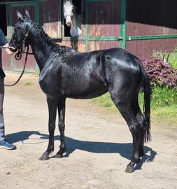 Iris, doppio pony Knabstrupper, morella ma portatrice del gene PATN. Alta circa 140 cm, pronta per la doma, ottimo carattere.