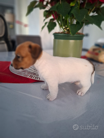 Jack Russell Terrier pelo liscio bianchi-tan con pedigree Roi, nati e cresciuti in ambiente familiare. Verranno ceduti con vaccini, sverminazioni, microchip e iscrizione all'anagrafe canina.
