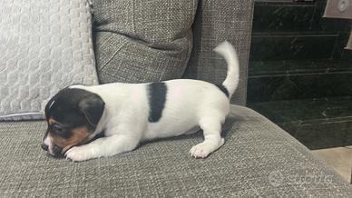 Cuccioli di Jack Russell a zampa e pelo corto, tre maschi e una femmina(la femmina è quella con le macchie nere in viso e tutta bianca) i cuccioli saranno consegnati al compimento dei 60gg con ciclo di sverminazione completato.
