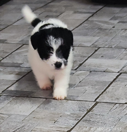 Disponibile dopo il 20 dicembre cucciolo maschio di due mesi è mezzo colore bianco nero Con vaccini , microchip, libretto sanitario, pedigree