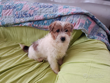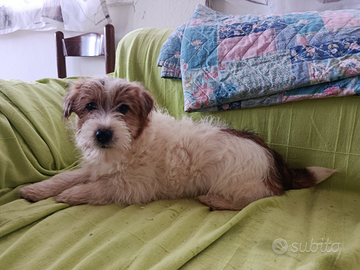 Disponibile e pronta per la consegna cucciola di jack Russell terrier femmina pelo ruvido bianco tan di 4 mesi. La cucciola viene ceduta con profilassi veterinaria completa per l'età. Genitori di proprietà visibili. Per info: 3313314100
