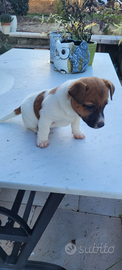 Cucciola femmina di jack russel bianco tan pelo raso taglia piccola iscrizione anagrafe canina prima vaccinazione e sverminazione particolarmente bella genitori visibili da subito disponibile avendo superato i 60 giorni di vita