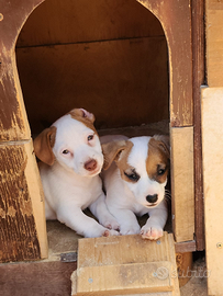 Vendo cuccioli di Jack Russell gamba corta nati il 13 marzo 2025, 2 femmine ed 1 maschio, genitori visibili, alta genealogia.