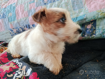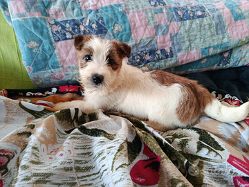 Disponibile e pronta per la consegna cucciola di jack Russell terrier femmina pelo ruvido bianco tan di 4 mesi.
