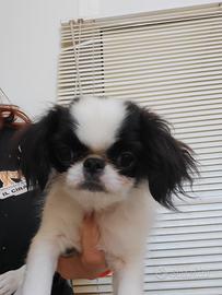 Cucciolo di mento giapponese maschio di 4 mesi disponibile. Il japn chin è una razza nota per il suo fascino orientale e il suo temperamento dolce e raffinato. Fin dai primi giorni si è dimostrato socievole e delicato, abituato al contatto con altre persone e con altri animali. Questo piccolo cucciolo ha un pelo setoso dal colore bianco con le macchie nere. La sua espressione tipica, con gli occhi grandi e scuri, è dolce e curiosa. Il Giappone chin è un cane tranquillo e pulito che non necessita di grandi spazi e si adatta perfettamente per la vita in appartamente. Impara infretta a stare a casa da solo. Il nostro cucciolo viene consegnato con: microchip, piano vaccinale, sverminato, pedigree e regolare ricevuta fiscale. Possibilità di poagamenti rateali fino ad un massimo di 24 rate. Se vuoi venire a vederlo senza impegno, chiamaci per fissare un appuntamento.