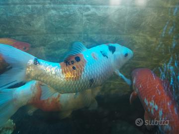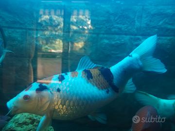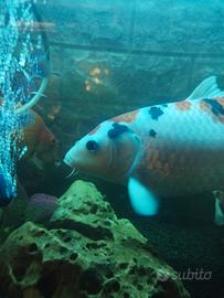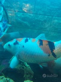Vendo Carpa koi di 28/30 cm per riallestimento acquario. Carpa Sanke Taisho Sanshoku , nutrita con mangimi premium con colorazioni base bianca e chiazze arancio con note di nero. Non spedisco