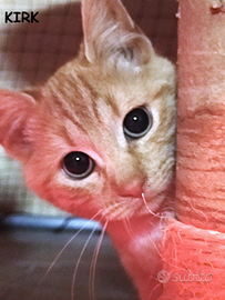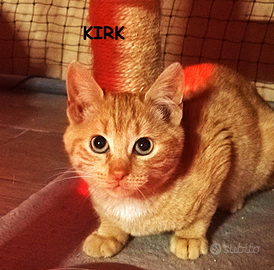 Salve A-mici!!! Io sono Kirk! Mi chiamo come il biondo capitano dell'Enterprise di Star Trek perche' sono un combattente di grandissimo livello!! Mi hanno recuperato in una cuccia digiuno da giorni a causa di un forte raffeddore che non mi faceva piu' sentire gli odori ... aspettavo solo di morire, ma come il mio omonimo, nelle situazioni di difficolta' , ho tenuto duro in attesa che qualcuno con la telepatia e il teletrasporto, corresse a trovarmi... e cosi' e' stato!!! All'improvviso un angelo ha aperto il telo di questa cuccia e mi ha visto li' inerme e da quel momento tutto e' cambiato per me, calduccio infinito , lampada a infrarossi, pappe buone e cure per farmi tonare al mio splendore.. sono sempre un comandante!!!! Adesso cerco una nuova astronave da gestire che abbia divani, tiragraffi, cucce, palline e tanto tanto amore per me... chi vuole fare parte del mio equipaggio???? Il micino si affida con profilassi sanitaria e microchip. No giardini Ne' campagne. Info 3202595497