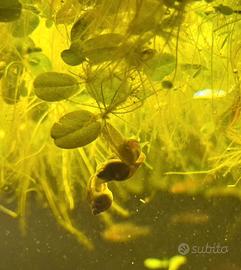 Le Physa aiutano a tenere pulito l'acquario, Lemna e Salvinia assorbono nitrati e limitano le alghe.