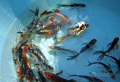 Disponibili koi butterfly colorazioni grado A di 9-10 cm mix scaleless, a specchio, ginrin, vari colori. Butterfly 10 cm euro 12 ognuna. NON c'è catalogo per singolo esemplare data la vasta quantità di esemplari, ma l'acquisto si intende per mix o preferenze generiche di colore, gli esemplari sono tutti di colorazione grado A. Disponibili anche Kabuto koi nelle colorazioni silver e gold (prima foto). Disponibili anche pinnacorta 10cm mix assortito euro 6 ognuna. Sani, quarantenati, abituati in comunità con altri pesci all'esterno, potete unirle tranquillamente ad altri pesci già presenti in laghetto. Disponibili altri pesci da laghetto, piante, prodotti, assistenza. Non è un negozio non c'è quindi apertura al pubblico. PRIMO CONTATTO TELEFONICO 3717704100, LEGGO RARAMENTE I MESSAGGI SUL SITO. NON SPEDISCO ANIMALI, la spedizione di QUALSIASI tipo di animale tra privati è ILLEGALE (informatevi, poste e corrieri solo solo per trasporto merci), ed eticamente sbagliato dato che molto spesso muoiono in pacchi persi, danneggiati, non consegnati, confezionati male, finiti in giacenza per errori. Volere un animale deve essere accompagnato anche dell'intelligenza e la morale di non metterli in pericolo pur di averli.