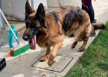 Koira, pastore tedesco femmina, sterilizzata, abituata in casa, buonissima con le persone e i bambini, va al guinzaglio.
