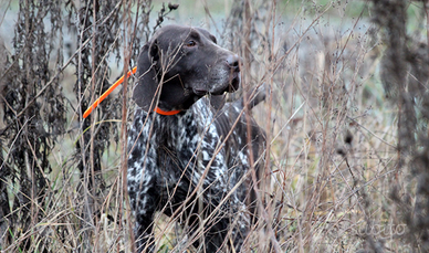 Kurzhaar maschio specialista di 4 anni per la caccia alla beccaccia, nel bosco e nella macchia mediterranea. Grande fondo e resistenza per più giorni di caccia. Ferma solida, consenso e perfetto recupero e riporto anche dall'acqua