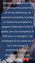 La gatta si chiama Tombolina, è mansueta, è scomparsa i 19 febbraio 2026 in viale della libertà. A Sinnai. Se qualcuno l ha vista , mi chiami subito al 3713791415. Anche su WhatsApp. Lauta ricompensa di 300 euro