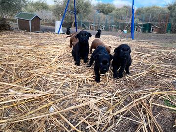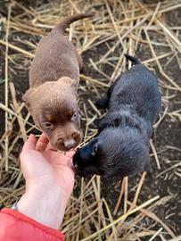 Cedo cuccioli di incrocio Labrador,madre originale.i cuccioli sono pronti per la consegna,mangiano in autonomia e sono sverminati. Sono 4 femmine di cui una color cioccolato come la madre e tre neri,e 4 maschi di cui 2 color cioccolato e due neri. In foto è visibile anche la madre.