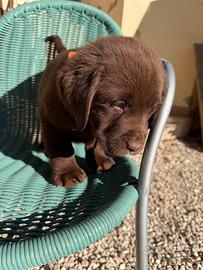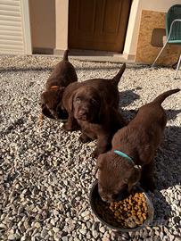 Cuccioli cioccolato nati da genitori visibili di mia proprietà, cuccioli alta genealogia sani e belli nati il 3 novembre da genitori selezionati per morfologia, esenti displasia e test genetici clear, cuccioli allevati in ambiente familiare dove vengono già preparati ad essere puliti e tranquilli,
