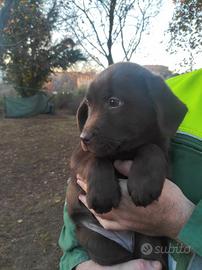 Labrador femmina colore cioccolato di 80 GG viene ceduta con passaporto, vaccini, microchip. Genitori esenti da displasia