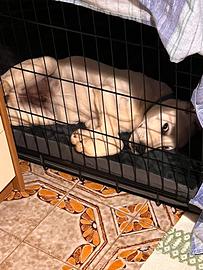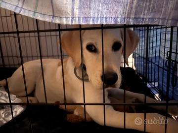 Labrador retriever maschio originale di 3 mesi con 3 dei 4 vaccini già fatti, microchip, sverminato e già pronto a poter passeggiare in sicurezza. Il cucciolo è già parzialmente addestrato ed in grado di eseguire comandi come zampa, seduto, terra ecc oltre ad essere già perfettamente abituato a fare i suoi bisogni fuori casa. Il cucciolo è inoltre già abituato a dormire serenamente nella gabbietta ed è anche in grado di stare solo senza provare disturbo. Il piccolo viene venduto con tutto l'occorrente di giochi, gabbietta e il cibo che mi è rimasto a casa. Vendo soltanto per ragioni familiari, altrimenti non me ne separerei per nulla al mondo. Contattate per ulteriori informazioni