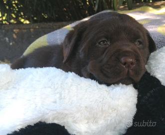 Cuccioli di labrador retrievers colore chocolate disponibili per proprietari eccellenti presso allevamento con affisso ENCI. Ultime due femminucce con pedigree interessante. Genitori esenti displasia anche e gomiti con certificato Celemasche (Hd A Ed 0), dna depositato presso Enci, esenti dalle principali patologie della razza. I cuccioli potranno essere consegnati in tutta Italia ed isole a partire dal compimento dei 2 mesi (dalla terza decade di marzo) e avranno microchip, iscrizione anagrafe canina, 3 cicli di vermifugo, certificato veterinario di buona salute, primo vaccino polivalente, puppy kit e se richiesto vademecum con alcune indicazioni sulla crescita del cucciolo e del suo inserimento in famiglia.