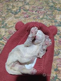 Disponibili dal 15 giugno,cuccioli di lagotto romagnolo bianco arancio. I cuccioli saranno ceduti non prima dei 70 giorni, con vaccino, sverminati, iscrizione anagrafe canina e pedigree enci. Disponibili 2 femmine e 5 maschi. I cuccioli sono visibili previo appuntamento. Genitori ottimi cercatori di tartufo. Per altre informazioni contattate telefonicamente..