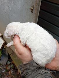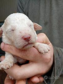 Disponibili ultimi 2 maschietti di Lagotto romagnolo nati il 10 dicembre 2025, uno bianco l altro bianco arancio,linea di sangue da lavoro e bellezza,adatti anche a compagnia, verranno ceduti a partire da fine febbraio con microchip, iscrizione anagrafe canina, pedigree, libretto sanitario,un vaccino, sverminazioni ,visita completa veterinaria pre consegna, puppy kit primo periodo.Possibilita di avviamento o preparazione alla cerca del tartufo .