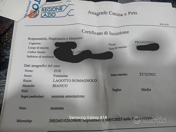 Cedo lagaotto femmina,AVVIATA alla ricerca del tartufo. È sempre uscita per la ricerca del tartufo estivo e bianco la cedo per mancanza di tempo.figlia di entrambi genitori ricercatori di tartufo
