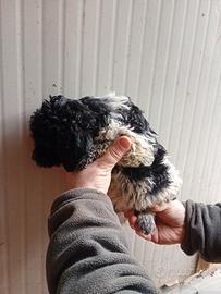 Cucciola femmina nata il 10 dicembre dai nostri lagotti puri con pedigree linea adatta alla cerca del tartufo ,ma ha un difetto di colore è uscita come si vede dalle foto a chiazze nere che nello standard del Lagotto non è ammesso, quindi la cucciolina avrà microchip iscrizione anagrafe canina libretto sanitario vaccino e sverminazioni , ovviamente non abbiamo emesso il pedigree , è molto dolce e affettuosa , se ceduta a 75 giorni senza avviamento al tartufo ma come cane da compagnia la richiesta è 400 altrimenti se sì vuole avviata bisogna contattare per telefono.
