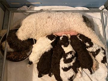 Cucciolata nata il 22 agosto entrambi i genitori sono di nostra proprietà,figli di Papa pedigree rosa e riproduttore selezionato,mamma anch'essa con pedigree ( il suddetto certificato serve a dimostrazione che sono a tutti gli effetti e a titolo lagotti romagnoli puri)ad attestazione che sono puri e non un possibile incrocio con razze simili.Sono ancora disponibili 4 dei 7 cuccioli(2 femmine e 2 maschi)che si cederanno dopo i 70 giorni,con Pedigree Roi,microchip,1 vaccino,sverminati,lastre alle anche e ai gomiti (a dimostrazione che sono puliti per quanto riguarda possibili future displasie)e test genetici(puliti per quanto riguarda possibili malattie genetiche),come da foto e video dimostrabili la cucciolata per motivi di socializzazione e cura nata e cresce in casa(quindi in contesto familiare,assolutamente no box)su richiesta ci rendiamo disponibili alla consegna di persona(dei trasportatori non ci fidiamo assolutamente non sapendo con quali altri animali viaggerebbero e le reali condizioni)