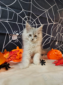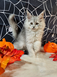 Allevamento PROFESSIONALE con linee prestigiose che provengono dai migliori esemplari di alcuni tra i migliori allevamenti al MONDO dispone sempre di cuccioli di ALTISSIMO livello , totalmente lontanissimi da tutto quello che si vede comunemente in giro (come si vede chiaramente dalle foto) , NON SIAMO PER CHI SCEGLIE IN BASE AL PREZZO (perché esemplari tra i migliori al mondo sono costosi ! non sono come la maggior parte di quelli che si trovano in Italia che al Maine Coon non assomigliano neanche e vengono ceduti anche senza garanzie) , siamo per chi non si accontenta e sceglie solo in base alla bellezza e alla ricercatezza degli esemplari e alle GARANZIE sulla salute e sul comportamento. IN FOTO FEMMINA BLU SIPVER TICKED CARRIER SHADED , estremamente chiara e con lineamenti bellissimi, solo 2 mesi e mezzo appena e già estremamente performante! Nell'ultima foto i genitori Valutiamo raramente la cessione da riproduzione e in ogni caso SOLO DOPO un confronto telefonico. I nostri cuccioli dispongono di eccellente pedigree e verranno ceduti sverminati , con doppio vaccino , libretto sanitario e test genetici dei genitori esenti dalle principali malattie gravi (Hcm , Pk-def , Sma) a cui sono soggetti i Maine Coon non controllati. Allevamento PROFESSIONALE significa che siamo autorizzati dalle autorità sanitarie perché rispondiamo ad altissimi standard su salute , igiene e cura dei nostri esemplari e siamo soggetti a controlli periodici a sorpresa. In Italia in molti si dichiarano "allevamento professionale" ma in realtà siamo 2 o 3 . Chiedete se è presente e verificabile la documentazione delle autorità sanitarie. Se non lo è vi stanno già truffando e non hanno garanzie sulla salute del cucciolo.