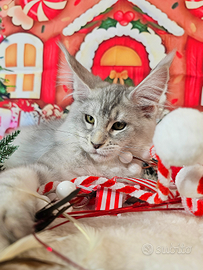 In foto femmina AS25 CARRIER SHADED (Blue Silver Tabby TICKED) il Ticked è la tigratura più pregiata..