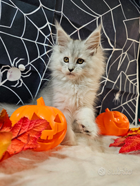 Allevamento PROFESSIONALE con linee prestigiose che provengono dai migliori esemplari di alcuni tra i migliori allevamenti al MONDO dispone sempre di cuccioli di ALTISSIMO livello , totalmente lontanissimi da tutto quello che si vede comunemente in giro (come si vede chiaramente dalle foto) , NON SIAMO PER CHI SCEGLIE IN BASE AL PREZZO (perché esemplari tra i migliori al mondo sono costosi ! non sono come la maggior parte di quelli che si trovano in Italia che al Maine Coon non assomigliano neanche e vengono ceduti anche senza garanzie) , siamo per chi non si accontenta e sceglie solo in base alla bellezza e alla ricercatezza degli esemplari e alle GARANZIE sulla salute e sul comportamento. IN FOTO PRESTIGIOSA FEMMINA BLUE SILVER TICKED (CARRIER SHADED) DI 2 MESI , NELL' ULTIMA FOTO I GENITORI Valutiamo raramente la cessione da riproduzione e in ogni caso SOLO DOPO un confronto telefonico. I nostri cuccioli dispongono di eccellente pedigree e verranno ceduti sverminati , con doppio vaccino , libretto sanitario e test genetici dei genitori esenti dalle principali malattie gravi (Hcm , Pk-def , Sma) a cui sono soggetti i Maine Coon non controllati. Allevamento PROFESSIONALE significa che siamo autorizzati dalle autorità sanitarie perché rispondiamo ad altissimi standard su salute , igiene e cura dei nostri esemplari e siamo soggetti a controlli periodici a sorpresa. In Italia in molti si dichiarano "allevamento professionale" ma in realtà siamo 2 o 3 . Chiedete se è presente e verificabile la documentazione delle autorità sanitarie. Se non lo è vi stanno già truffando e non hanno garanzie sulla salute del cucciolo.