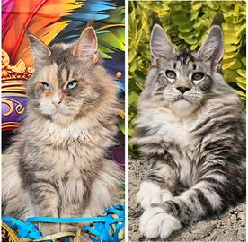 Allevamento con linee prestigiose che provengono da alcuni tra i migliori allevamenti al mondo dispone sempre di cuccioli di ALTISSIMO livello , totalmente lontanissimi da tutto quello che si vede comunemente in giro (come si vede chiaramente dalle foto) , anche i prezzi sono molto diversi. ..decisamente non per chi sceglie in base al costo, ma solo in base alla bellezza e alla ricercatezza degli esemplari. Valutiamo raramente la cessione da riproduzione e in ogni caso SOLO DOPO un confronto telefonico. Prima foto maschio russo di quasi 4 anni , papà di 2 delle cucciolate che nasceranno a Febbraio. Nelle altre foto le coppie che avranno cuccioli da fine gennaio a fine febbraio. È già possibile effettuare una prenotazione a prezzi inferiori (dato che sono parecchio costosi) I nostri cuccioli dispongono di eccellente pedigree e verranno ceduti sverminati , con doppio vaccino , libretto sanitario e test genetici dei genitori esenti dalle principali malattie gravi (Hcm , Pk-def , Sma) a cui sono soggetti i Maine Coon non controllati.