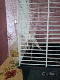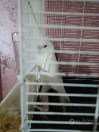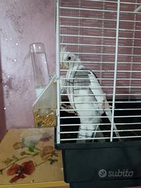 Vendesi bellissima coppia di Calopsite (Nymphicus hollandicus) in ottima salute e con piumaggio perfetto. Si tratta di esemplari selezionati nella mutazione Faccia Bianca Pezzata (Whiteface Pied), caratterizzati dall'elegante contrasto tra il bianco candido e il grigio perla, senza le macchi e arancioni sulle guance Dettagli della coppia: Soggetti: Coppia adulta e molto affiatata (vivono insieme da tempo). Mutazione: Entrambi Faccia Bianca Pezzata (particolarmente ricercati per la bellezza estetica). Comportamento: Il maschio è molto attivo, canta e ha iniziato le parate di corteggiamento. La femmina è tranquilla e in ottima forma fisica. Riproduzione: Coppia pronta per la cova. Mostrano già forte interesse per il nido e sono ideali per chi vuole iniziare un piccolo allevamento di qualità. Do con tutta la gabbia è il nido prezzo affare