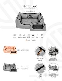 Morbido lettino rettangolare, sfoderabile e lavabile a 30° con cuscino double face e proprietà ortopediche. Tessuto di alta qualità, antigraffio e traspirante. Disponibile in 2 colori e 2 dimensioni. M- 75 x 60cm (€39,99) L- 95 x 75 cm (€54,99)