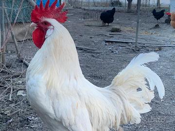 Meraviglioso gallo Livornese Bianco di quasi 6 mesi ... Vendo o scambio con pollastre